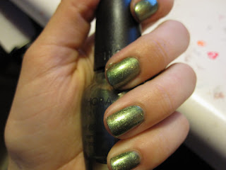 $OPI Leaf Him at the Alter. Loved this online, liked it in store, hated it at home, adored it on the nail. A medium-dark green with silver shimmer. I thought it'd be sheer, and I've never been so happy to be wrong!